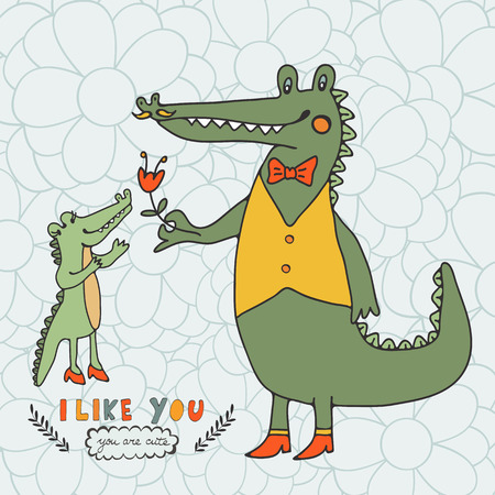 好きです あなたはかわいいです ワニの手描き文字で美しいカードです ベクトル図のイラスト素材 ベクタ Image