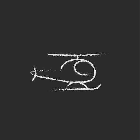黒の背景に分離された黒板白ベクトル アイコンをチョークで手書きをヘリコプターします のイラスト素材 ベクタ Image