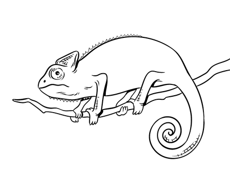 Coloring Book Page With Chameleon On The Branchのイラスト素材
