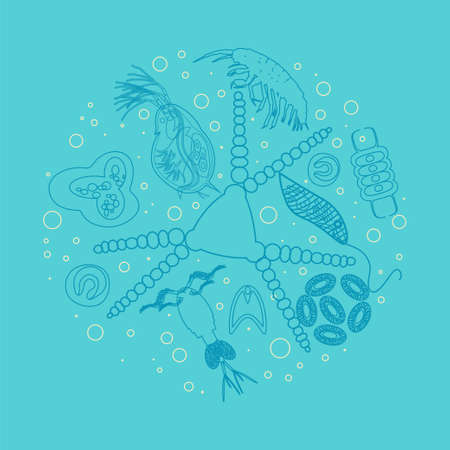 植物プランクトンと動物プランクトン 環境の生物学的性質の野生生物主題にプランクトンの小さな生物とベクトル イラスト のイラスト素材 ベクタ Image