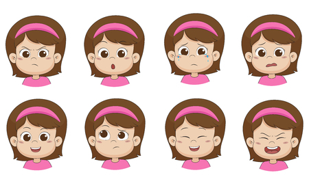 感情 怒り 驚き 叫び 恐怖 笑顔 考える 笑い 叫び声 かわいい女の子 Vector とイラストのセットです のイラスト素材 ベクタ Image